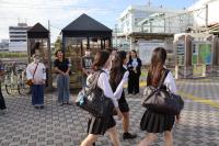 令和7年9月19日(金)の放課後、本校PTA生徒指導委員会がJR東海駅東口ロータリーにて、第2回PTA下校指導を実施しました。当日は、ご参加いただいた生徒指導委員の保護者様6名と本校教員5名が、下校する生徒に声をかけながら、安全に帰宅できるよう見守りました。
